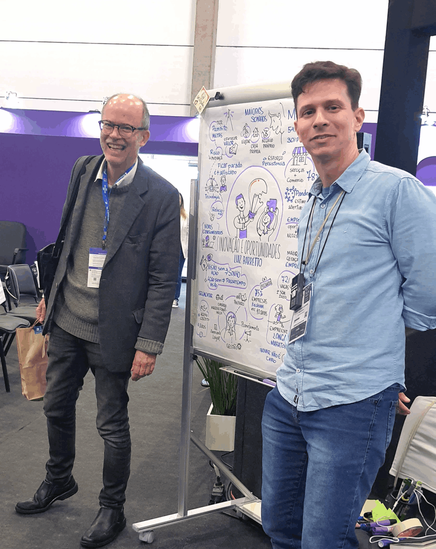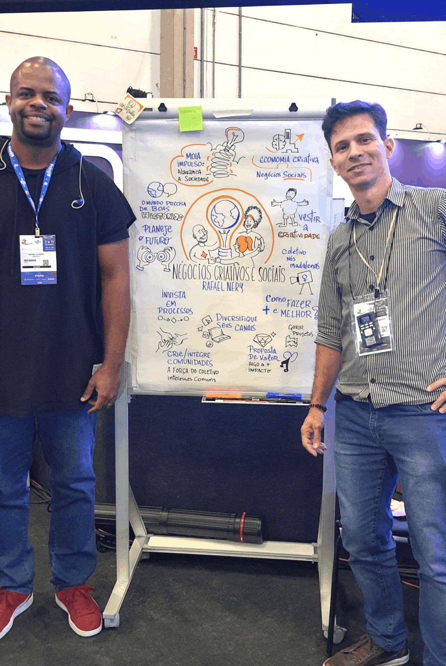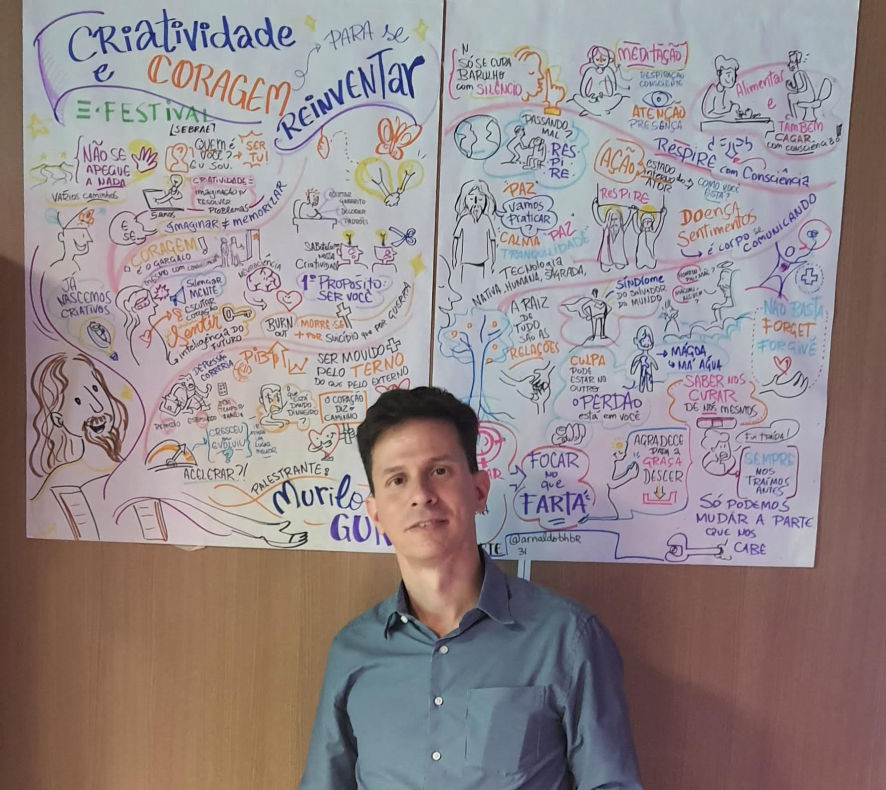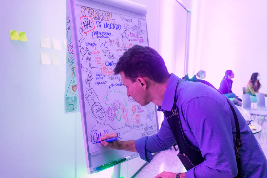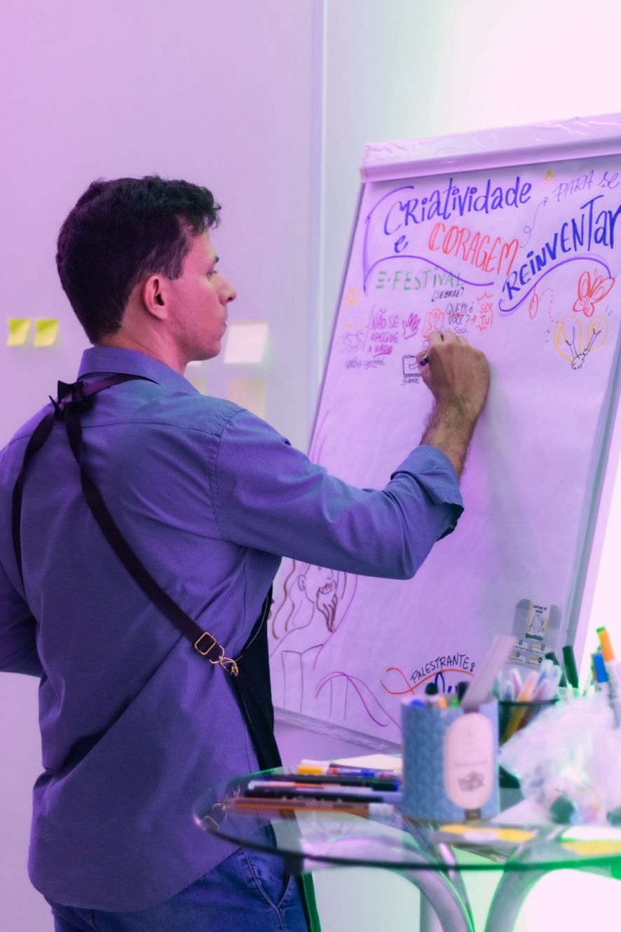 No universo dos eventos corporativos, workshops e reuniões estratégicas, Arnaldo Pedrosa se destaca por sua habilidade de transformar conteúdos em composições ilustradas envolventes e didáticas.